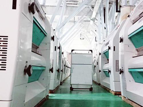 在倉儲(chǔ)、干法清理,制粉及面粉配粉的各道工序完全自動(dòng)化,日加工小麥200噸的面粉加工生產(chǎn)線。